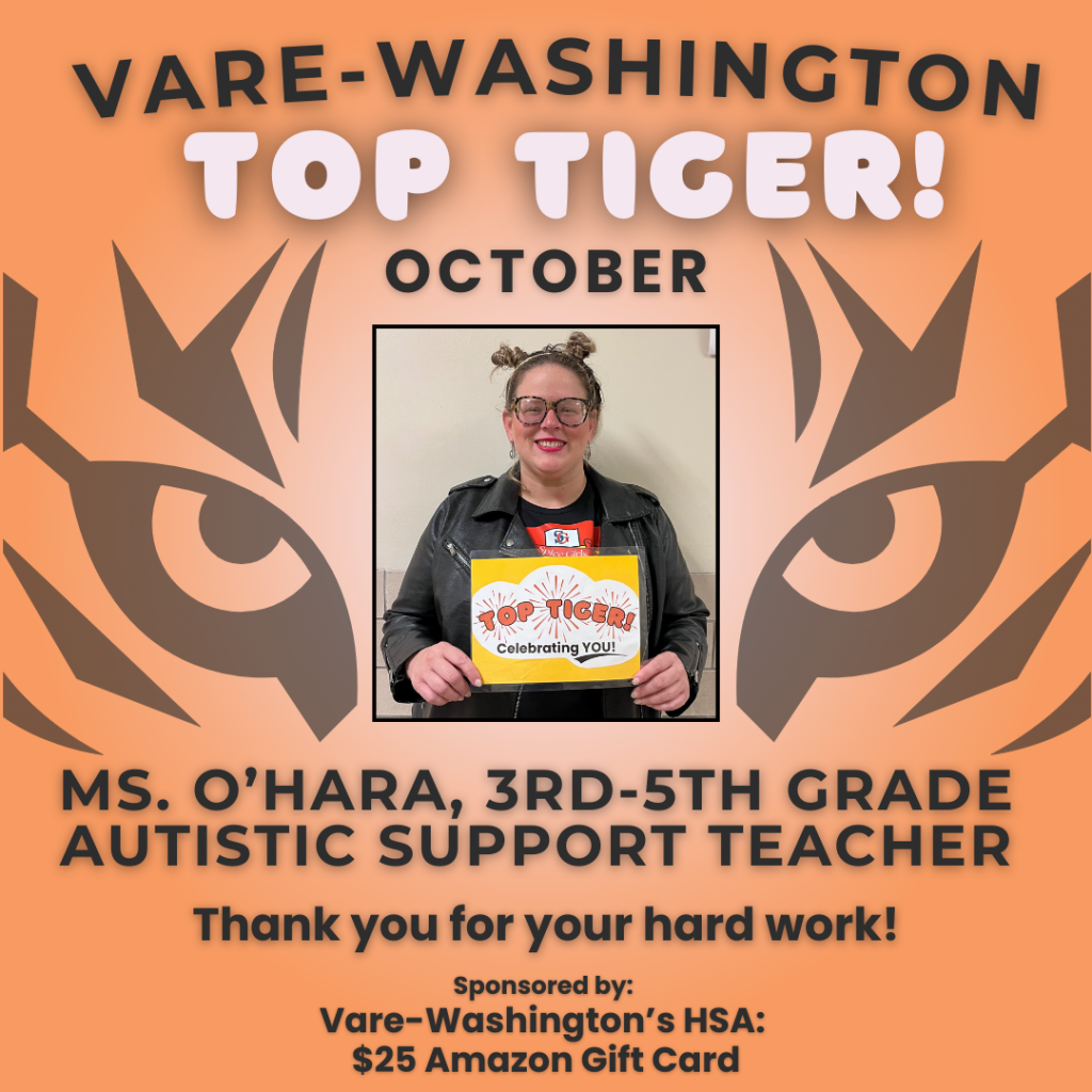 HSA recognizes 1 Vare-Washington Teacher or Staff Member each month for going above and beyond for the Vare-Washington Community. Those receiving this award can be nominated by the students, parents, administrators, teachers, and staff members. Award winners will receive a gift card from a local business to celebrate their contributions.