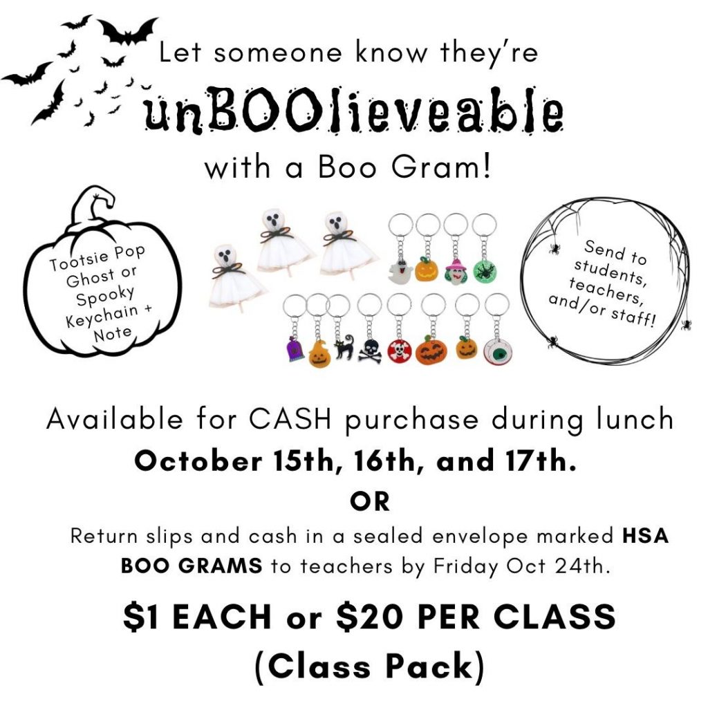 Each October, students can let somebody know that they’re unBOOleivable with a BOO Gram! This is a fun event for students, and a fundraiser for HSA.