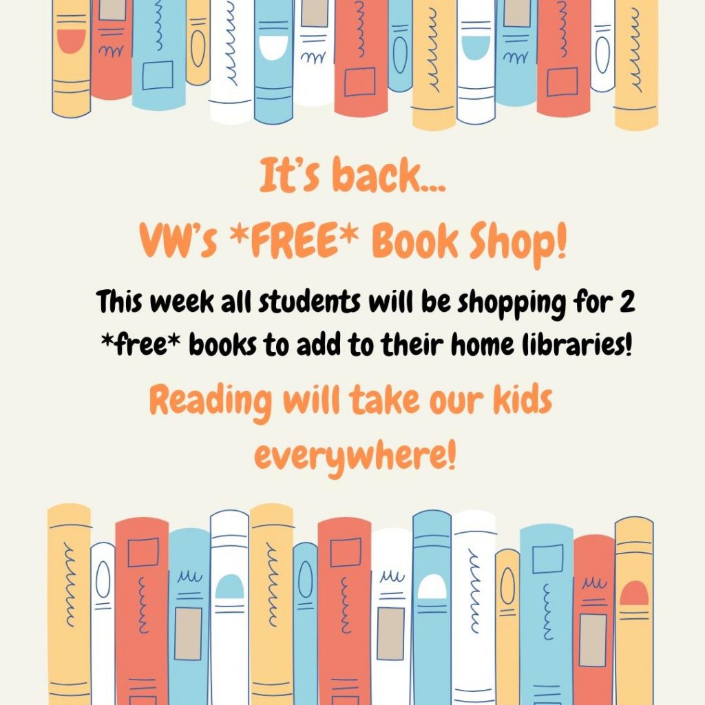 Through a Books in Homes grant awarded to Vare-Washington’s volunteer library team, the Vare-Washington Library is able to bring 4 FREE bookshops to Vare-Washington students each year. During each bookshop, students can select 2 books to add to their at-home collection.