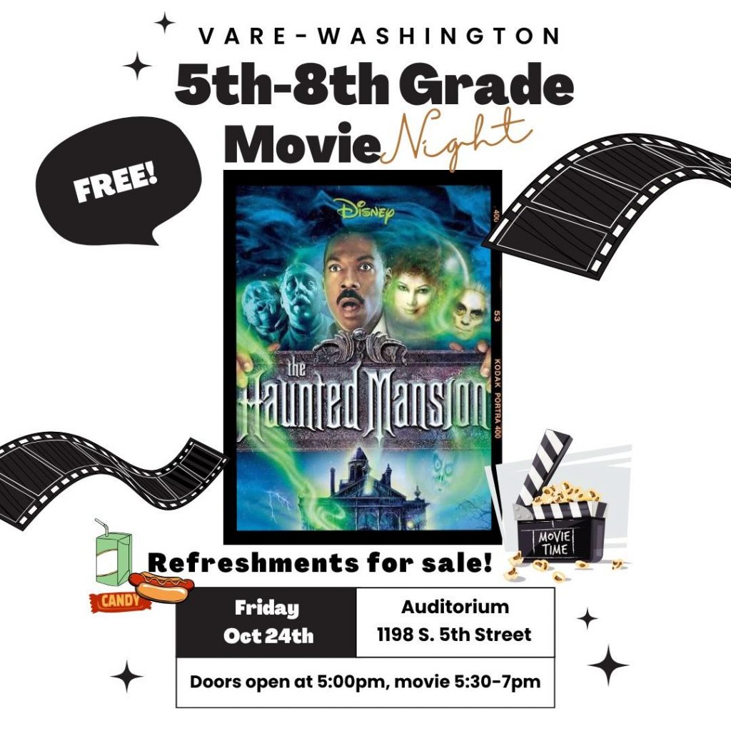 One of our favorite HSA events of the year! Movie Night is for Vare-Washington families only. Admission is free, and refreshments are available for purchase.