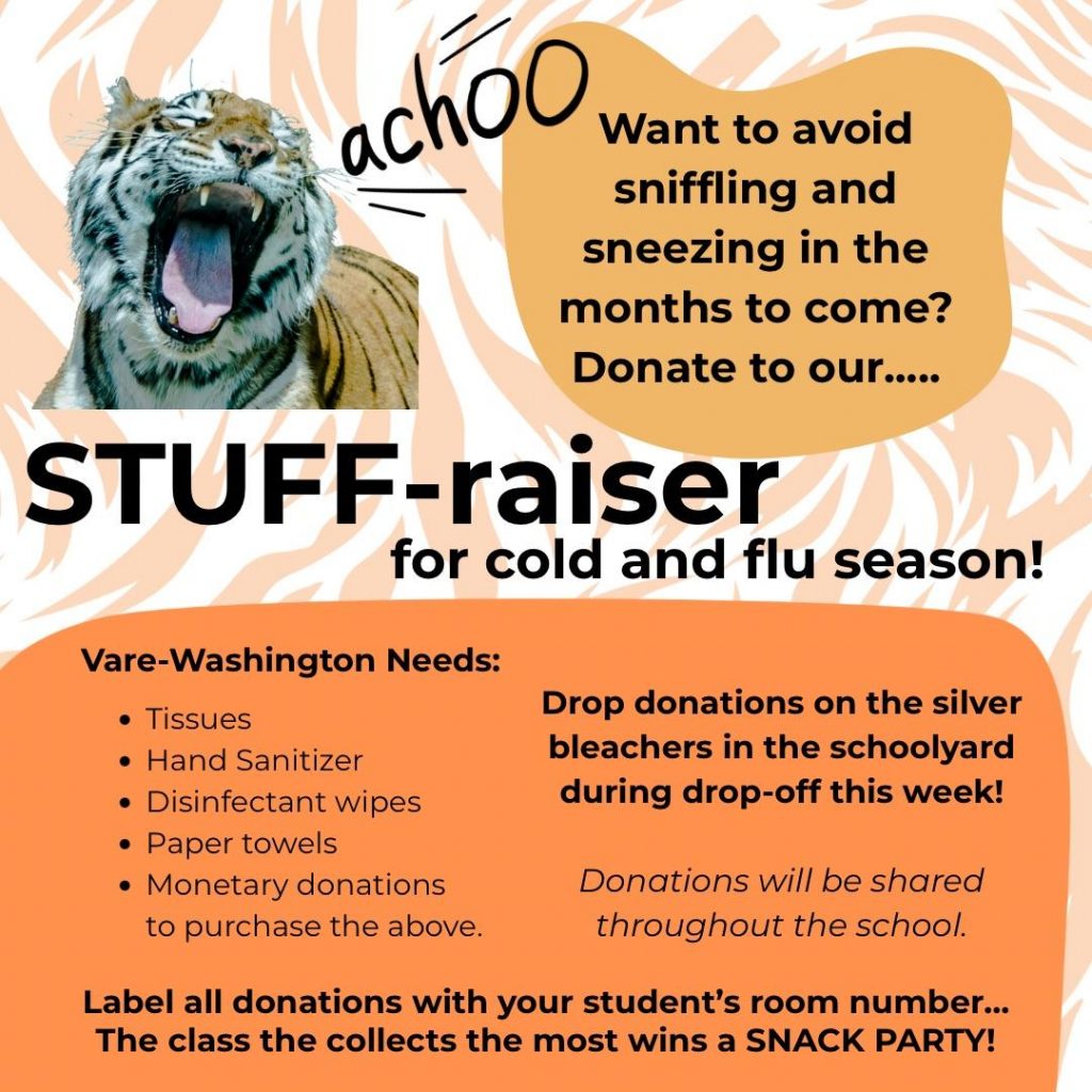 HSA helps to stock the school with STUFF to minimize the spread of germs during the cold and flu season! The classroom that brings in the most STUFF will win a snack party! 🧻🚫🦠